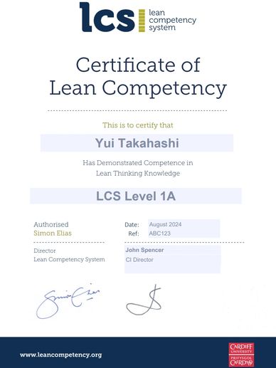 Lean 1A also strengthens your CV and career prospects. The certificate is recognised under Cardiff University’s Lean Competency System (LCS) and demonstrates practical improvement methods valued by employers, making you stand out for degree apprenticeships and entry-level jobs.